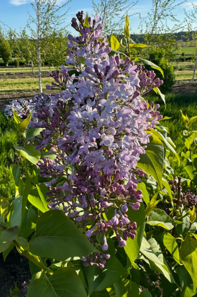 The Common Purple Lilac has for generations been cherished by gardeners for it’s fragrant purple blossoms and its ability to create a lush green wall. Technically a multi-stemmed shrub, this Lilac grows vigorously and flowers in late spring. Their conical clusters of florets have a tube-shaped base with four spreading petal lobes. The leaves are smooth, dark green, heart shaped and bud out prior to the flowers. The Common Purple Lilac is quite hardy, deer resistant and requires very little care. They are excellent for hedges along the border of a property line or as a windbreak but can also be planted as a single specimen.